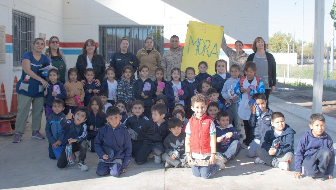 Alumnos de primer grado bautizaron “Mora” a una potranca en la Policía Rural y llenaron la mañana de ternura