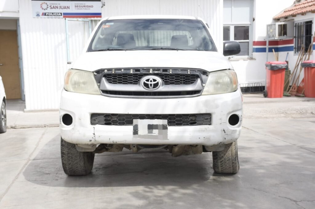 El procedimiento tuvo lugar el pasado 12 de marzo en la zona de Callejón García y Calle Perona, en el departamento de Rawson. Allí, los investigadores procedieron al secuestro de una camioneta Toyota Hilux de color blanco.